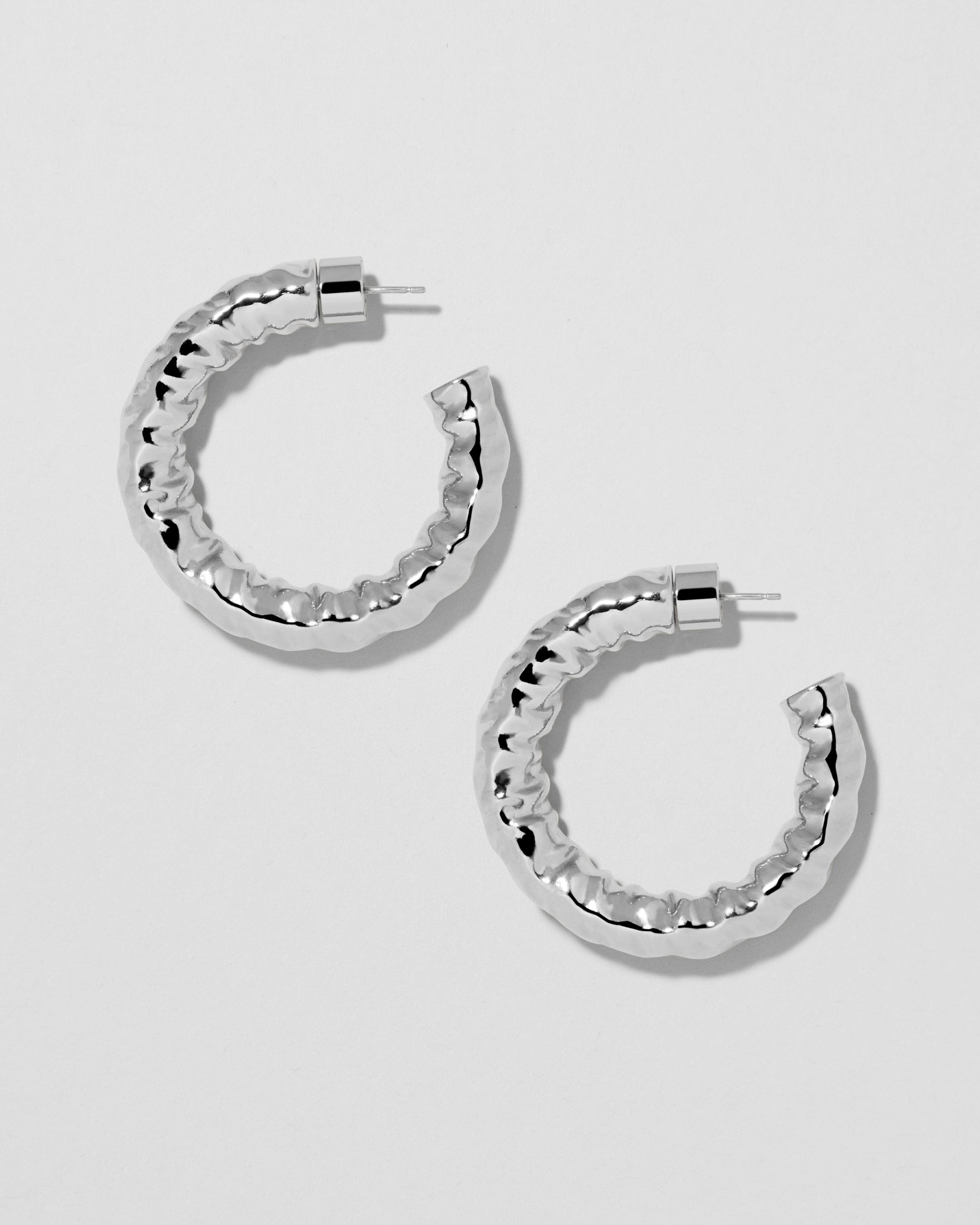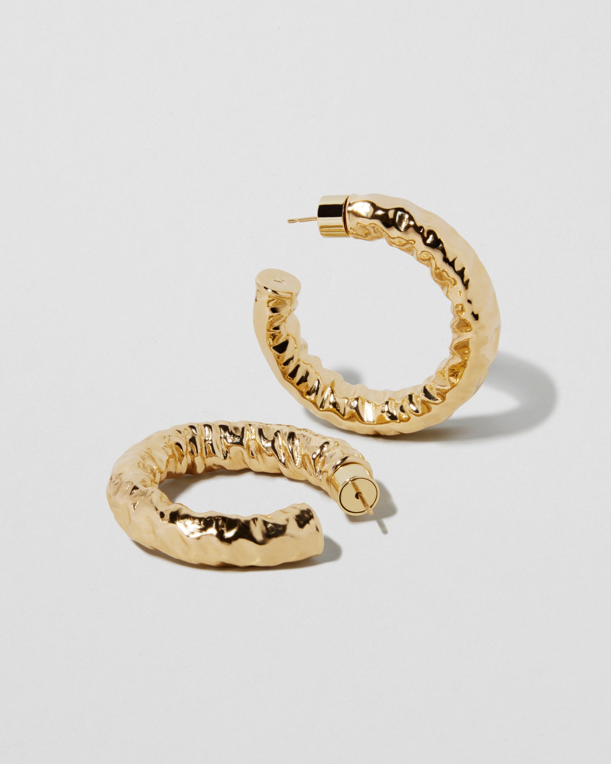 Make a statement with the 1"" Maeve Mini Hoops. These hand textured pieces are sure to become a must-have in your jewelry collection. Perfect for everyday wear or special occasions, the Maeve Mini Hoops will be an eye-catching addition to your look. Features solid 14K gold posts for long-lasting wear.