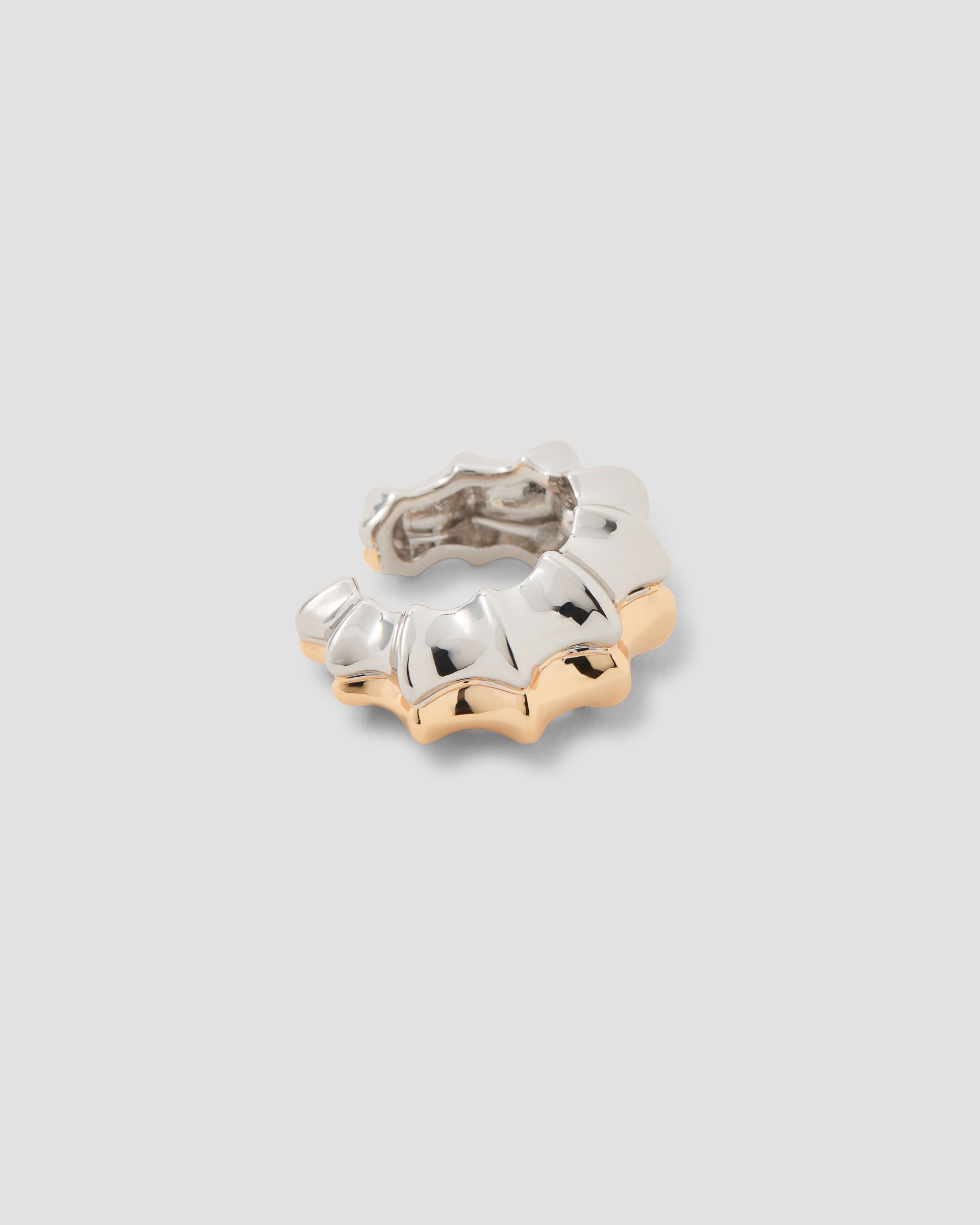 A two-tone accent with sharp definition. The Double Murphy Ear Cuff combines contrasting metals within a rigid ridged form that slips on easily. No piercing needed—just effortless texture and shine.