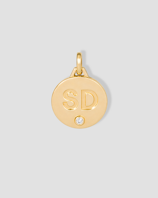 PERSONALIZED CIRCLE CHARM WITH DIAMOND IN 18K YELLOW GOLD