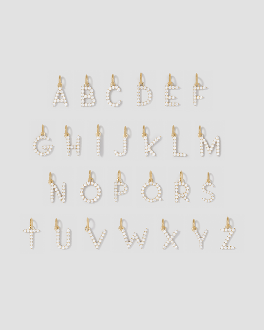 CAPITAL GOTHIC LETTER CHARM WITH PAVÉ WHITE DIAMONDS