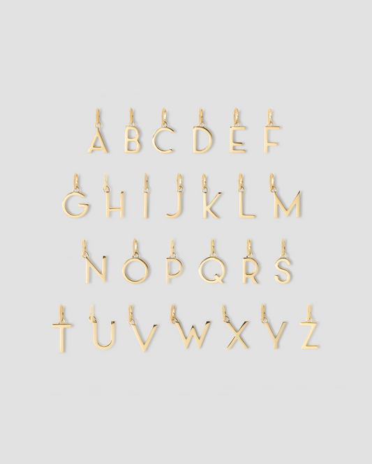 MINIMAL BLOCK LETTER CHARM IN 14K YELLOW GOLD