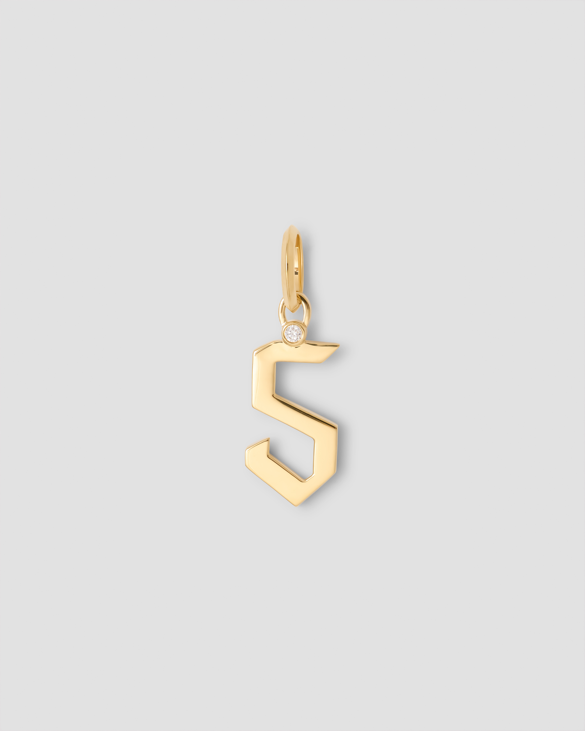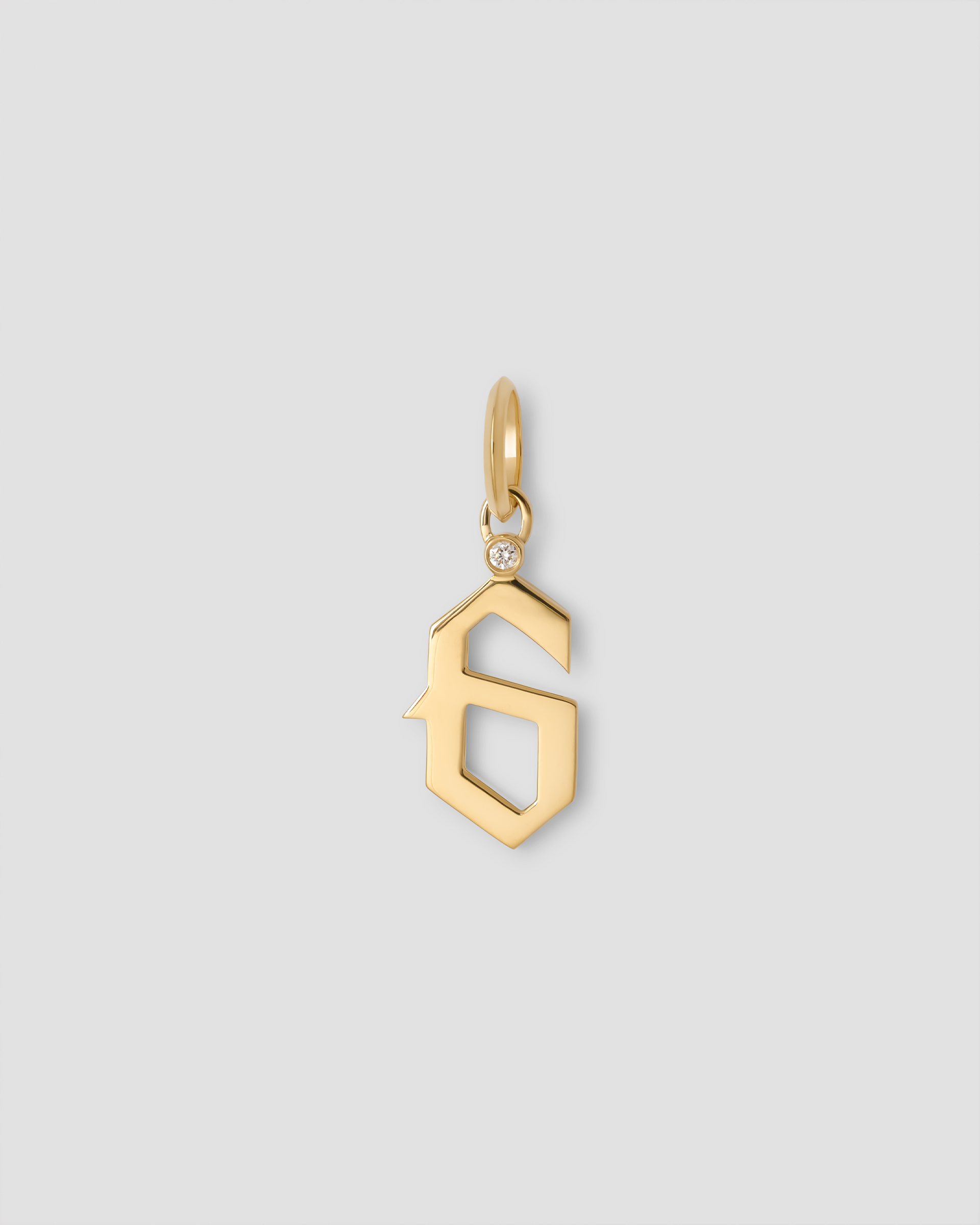 GOTHIC NUMBER CHARM WITH DIAMOND IN 18K YELLOW GOLD