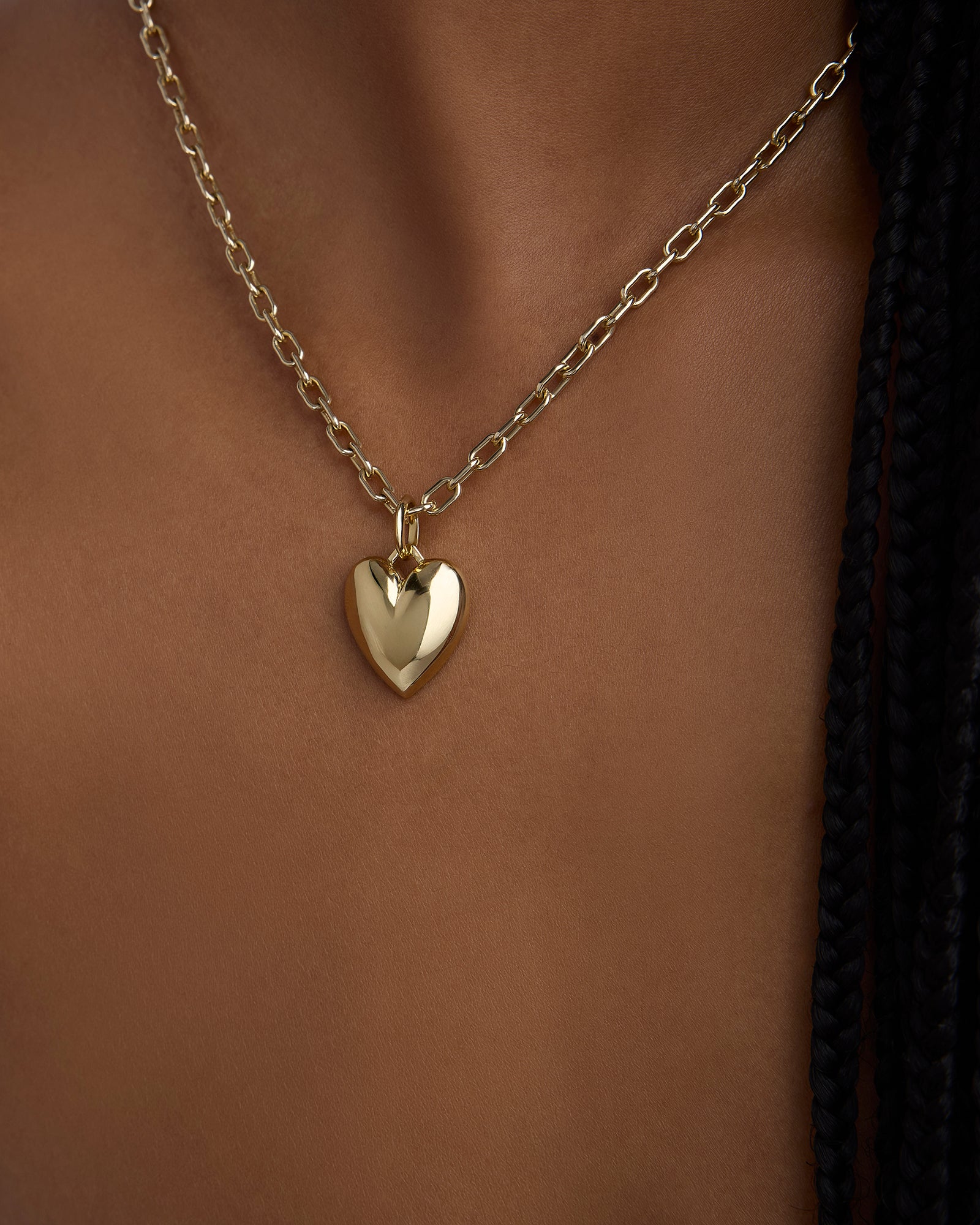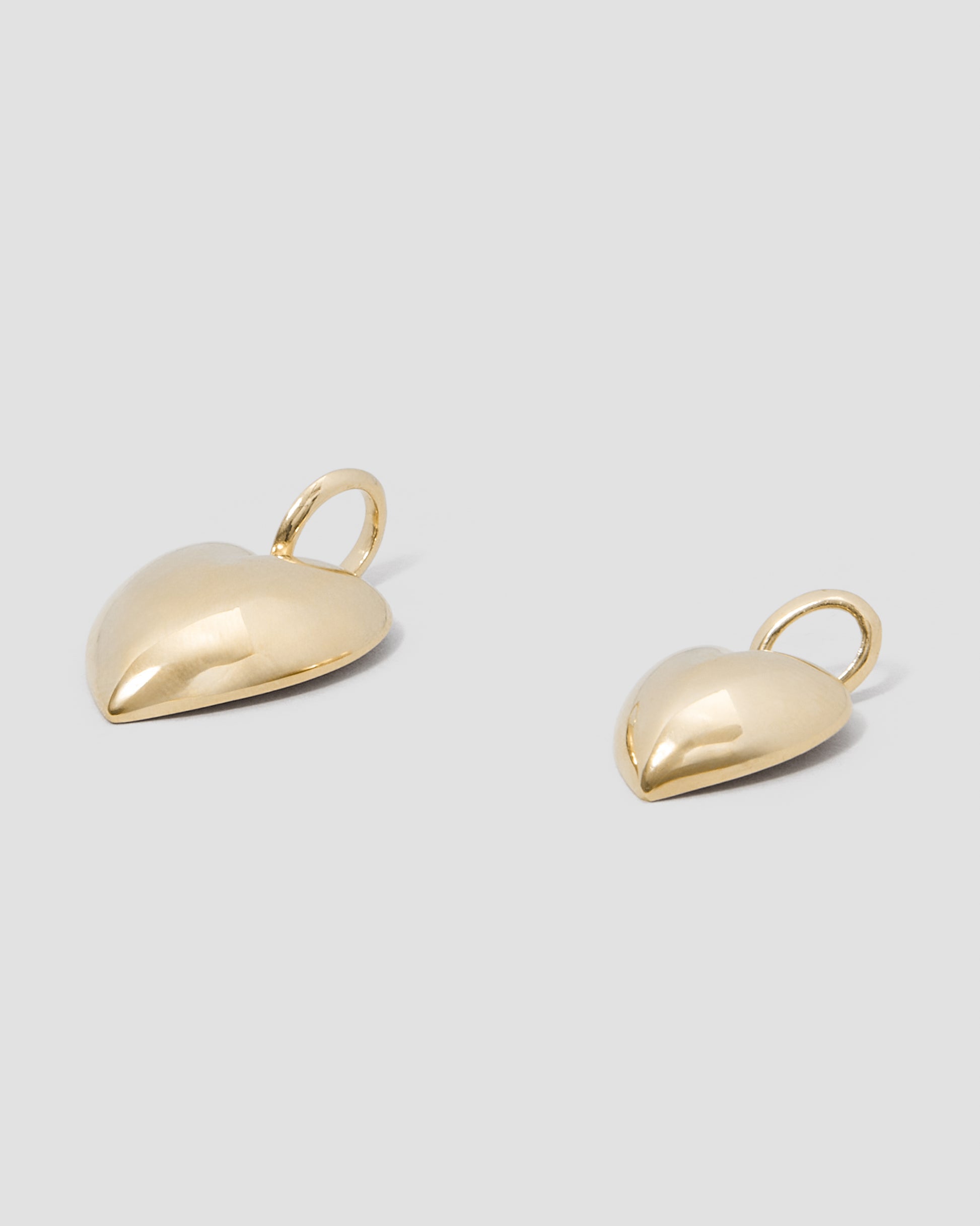 Not your average heart. This 18k gold charm is sleek, sculptural, and unexpectedly bold. Clean lines. Polished finish. Wear it solo or stacked — it’s the kind of piece that makes a statement without trying too hard.