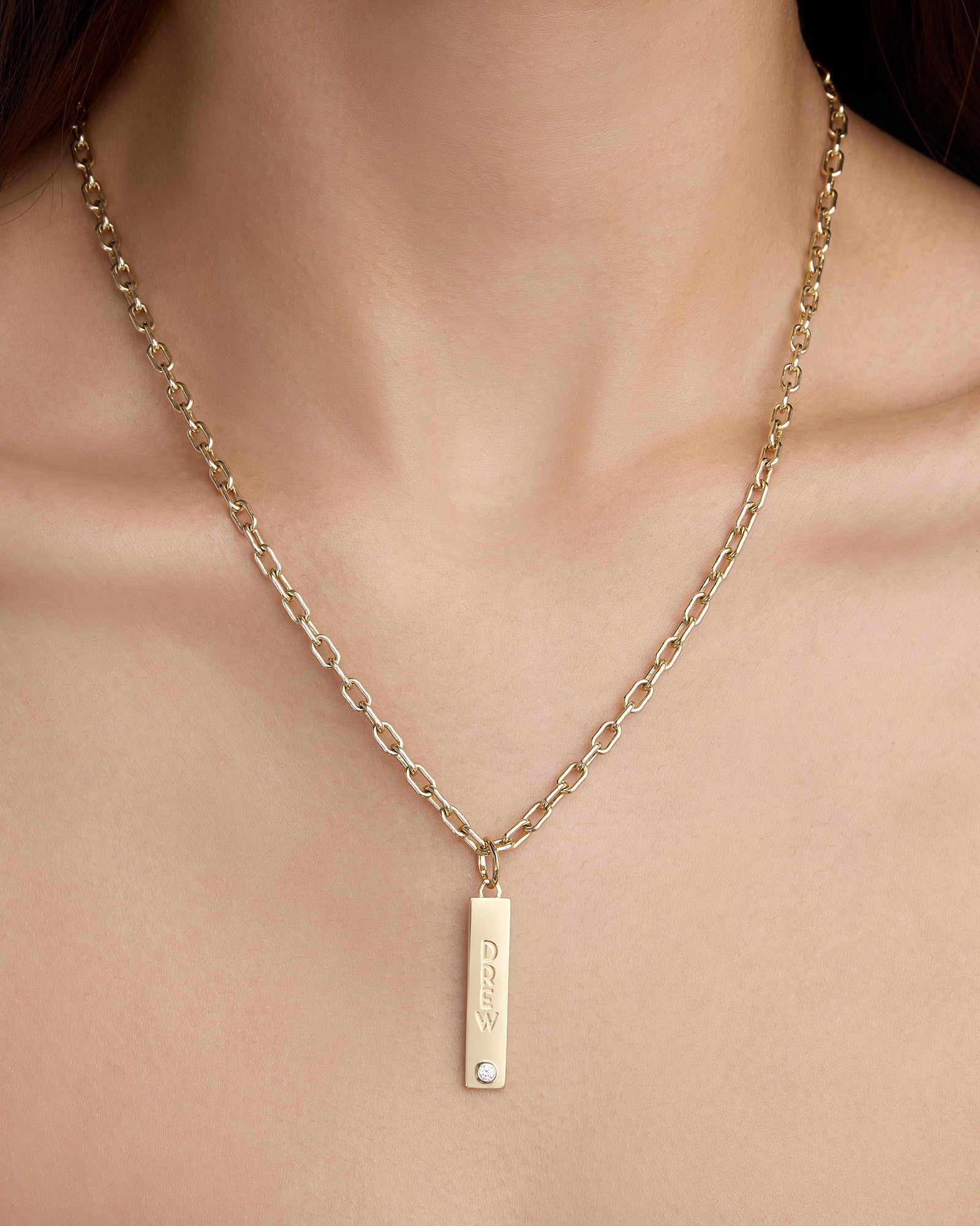 NARROW CLASSIC DIAMOND DOG TAG IN 18K YELLOW GOLD