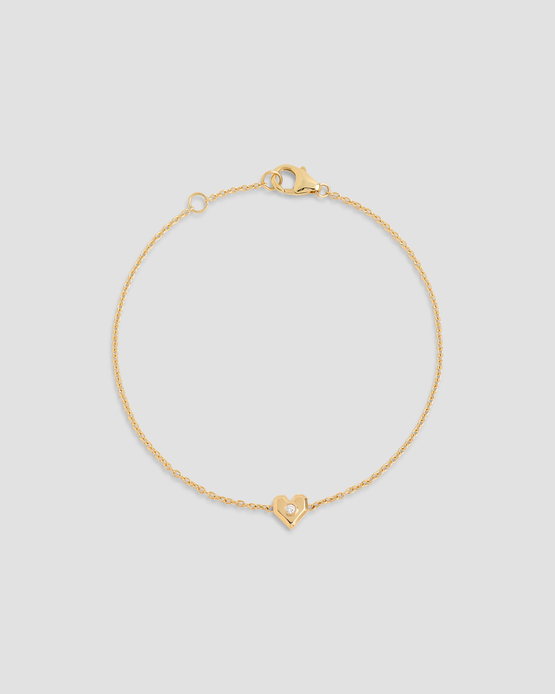 The Heart Bracelet is a 14K gold staple designed to feel personal without being sweet. Finished with a single diamond, it’s a minimal piece you can wear every day on its own or layered.