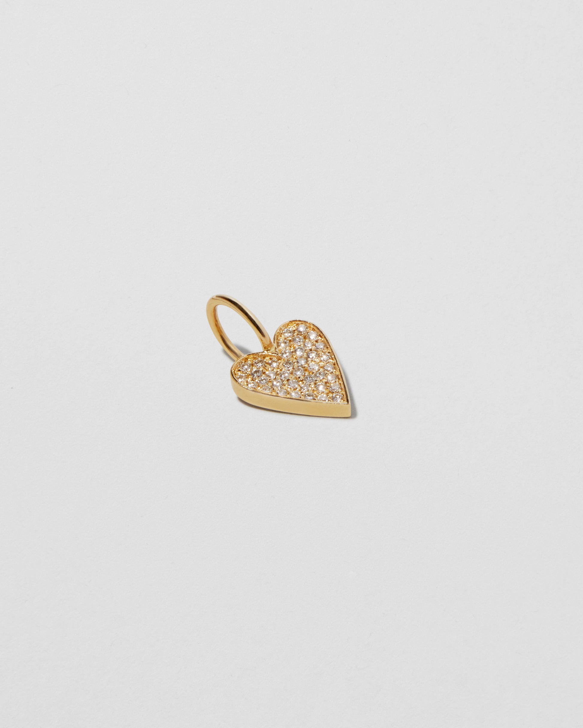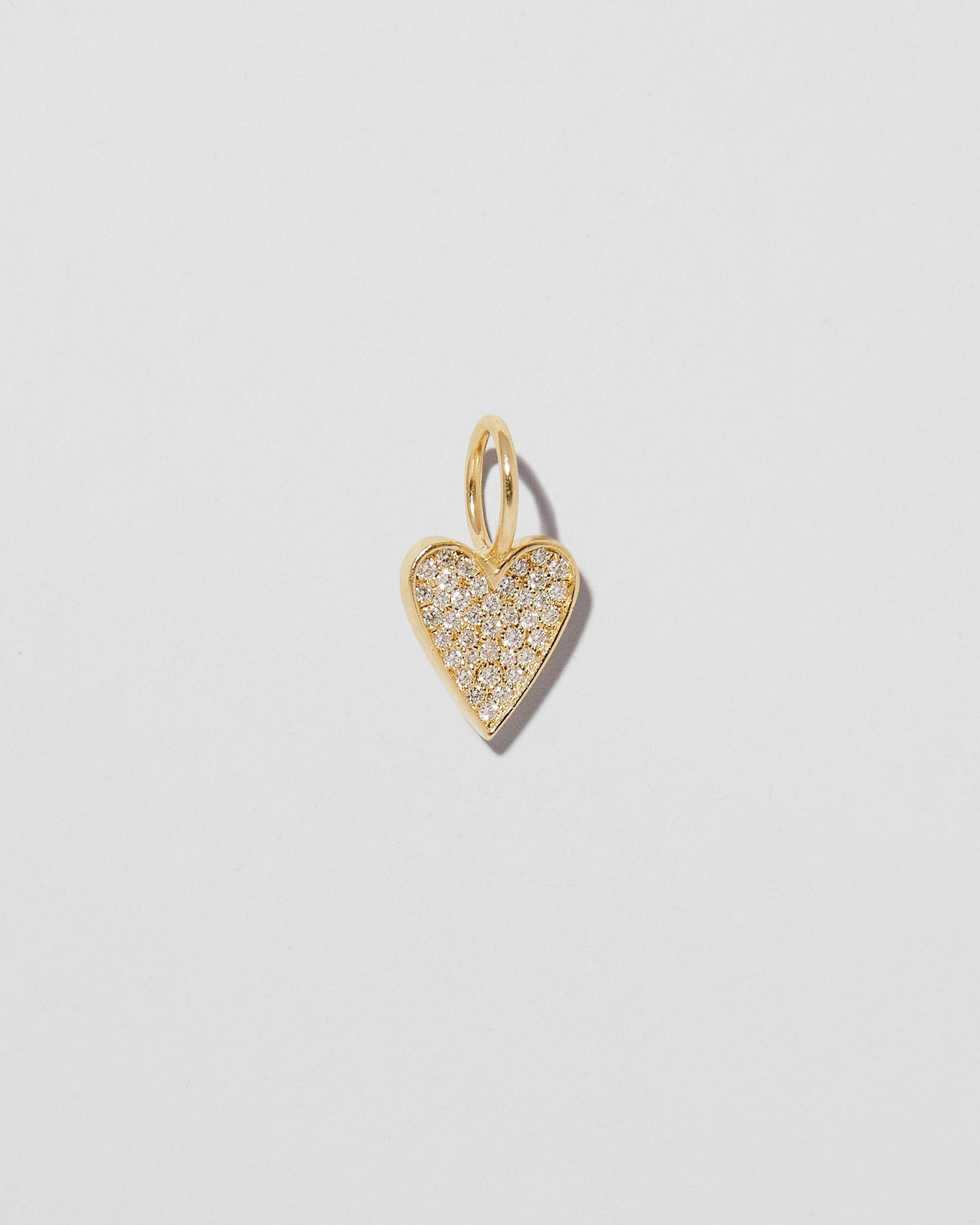 The heart shape silhouette that has quickly become a brand staple is now available in a clean, bright cut pavé white diamond charm. Wear alone for a bold statement or with favorite talismans.