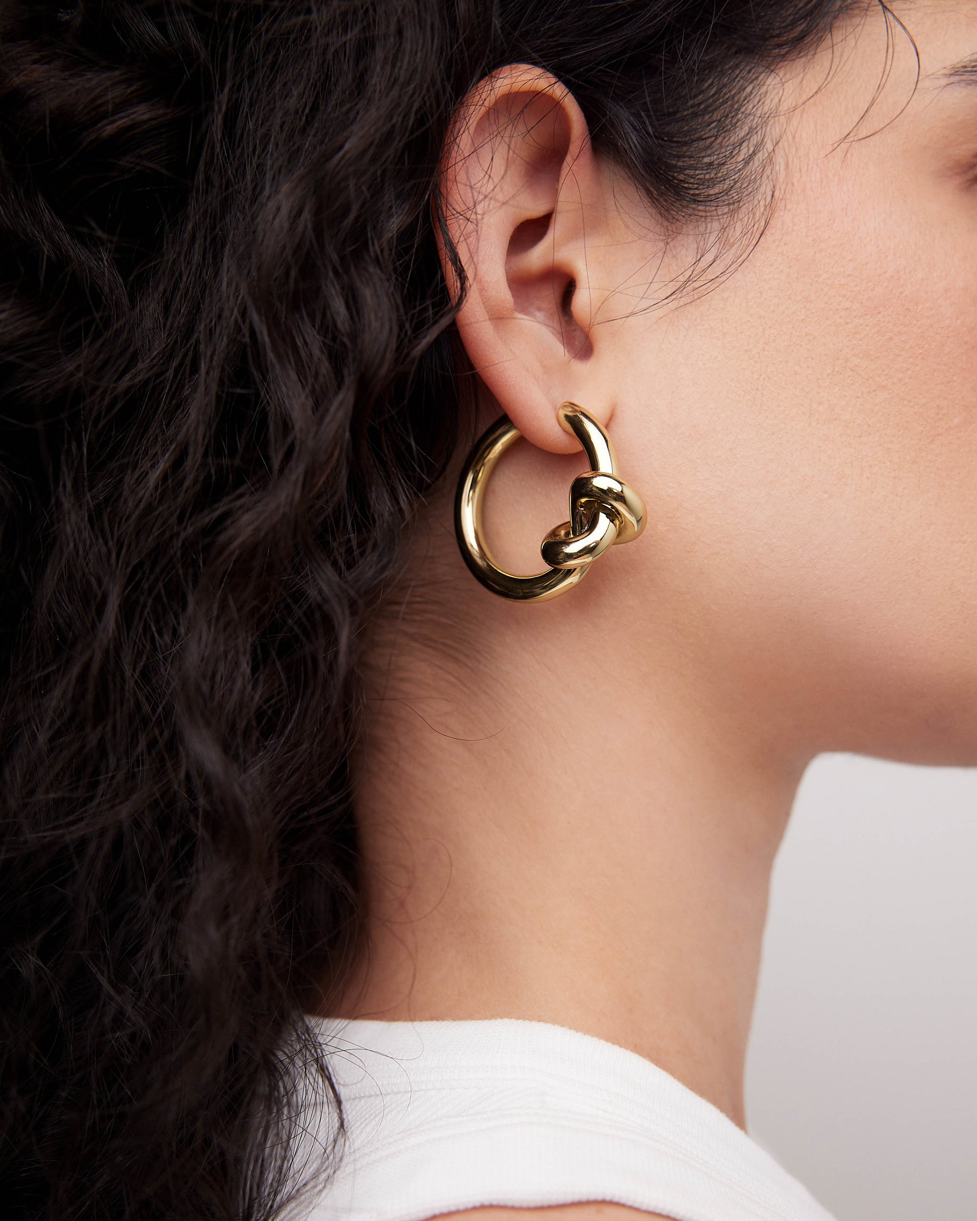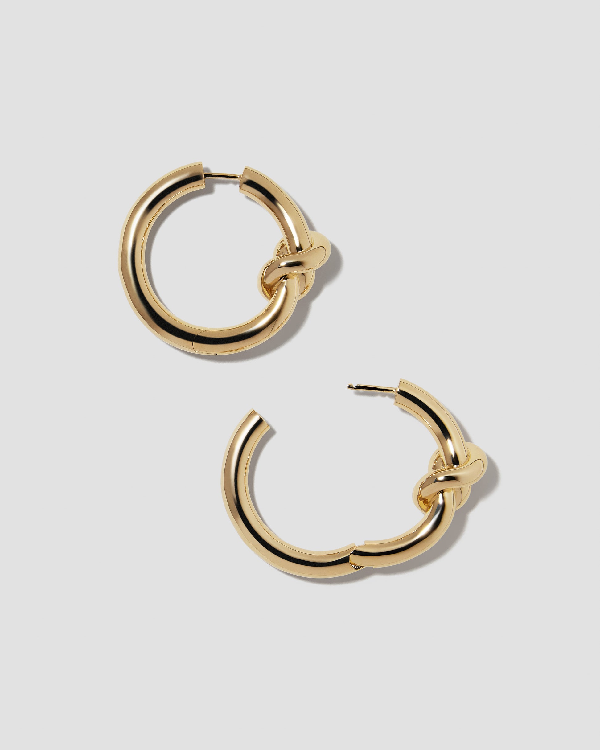 Featuring a unique tie-like knot design, these hoops offer a minimalist twist on a classic shape. With their sleek 14k gold hinged posts, they provide secure wear and elevate your look with subtle texture and effortless style.
