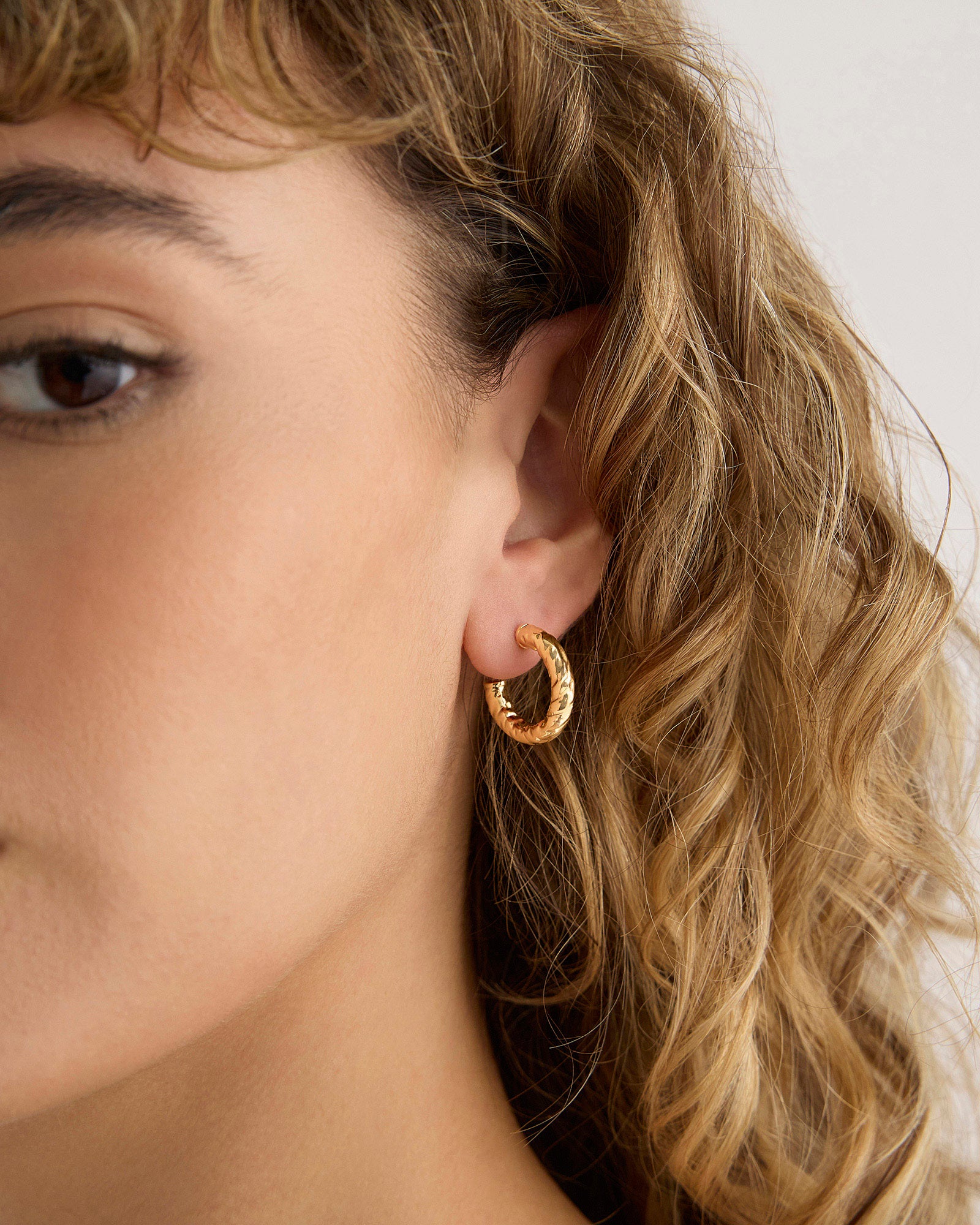 | Back by demand. Our best-selling micro hoop is relaunched in the signature Hailey texture, featuring 14k gold posts for all-day comfort. Sleek, stackable, and endlessly wearable—this is the huggie that never quits. |