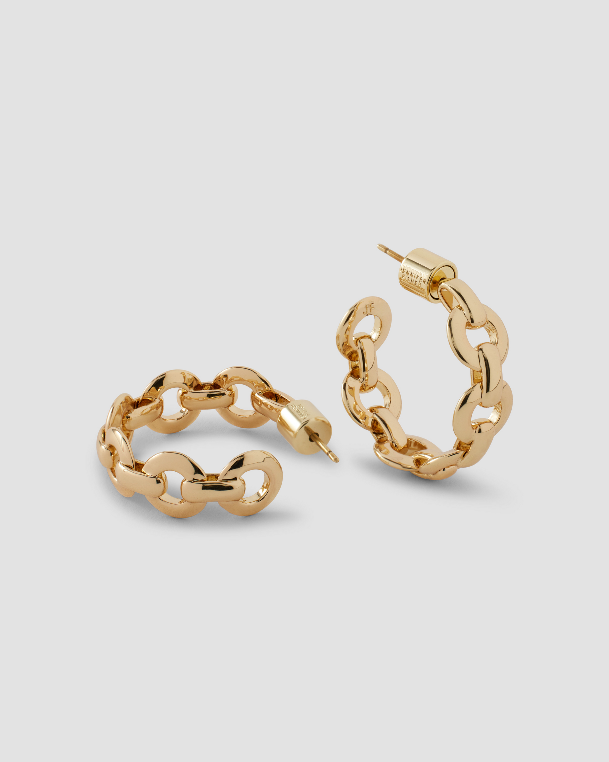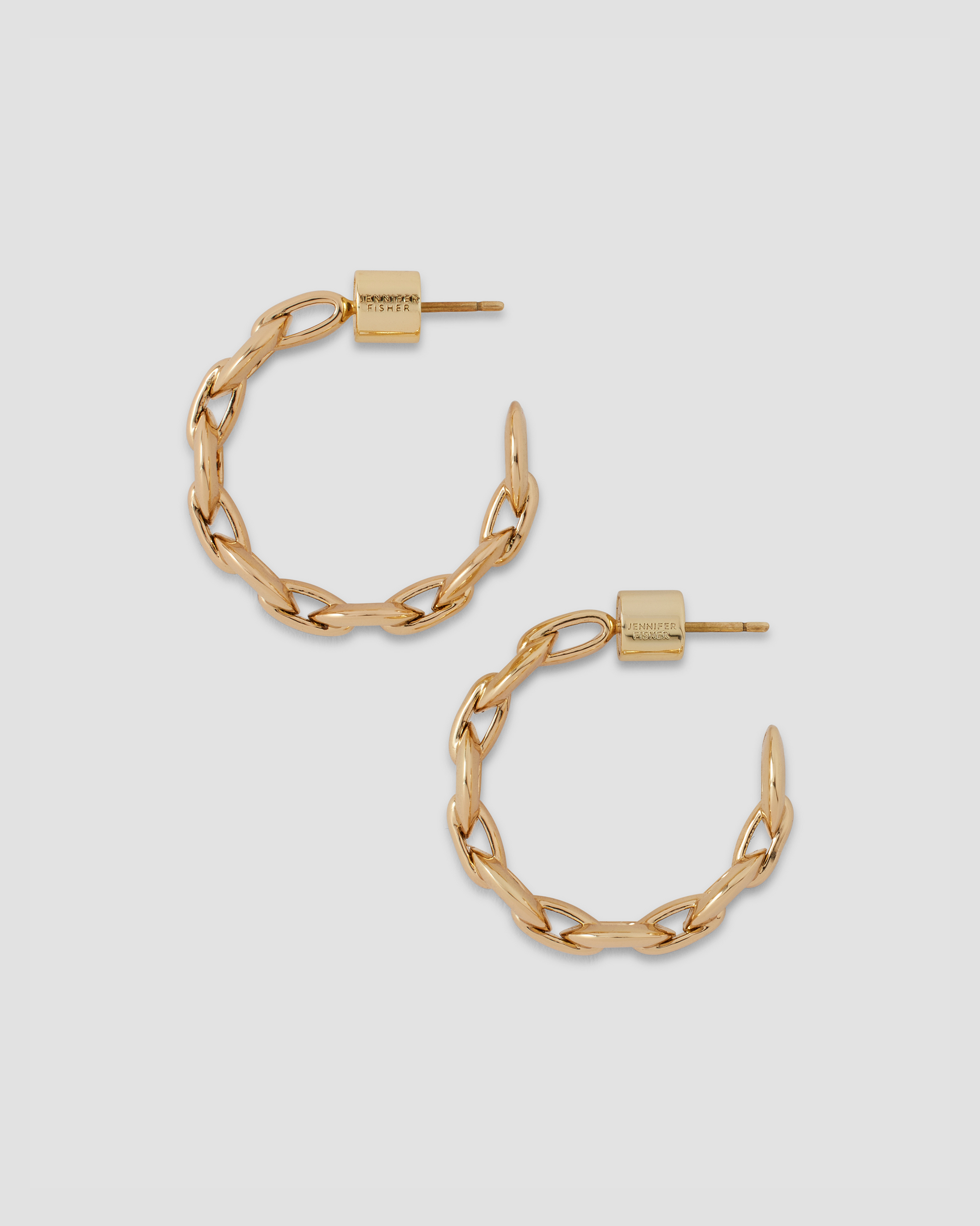 The KDH Huggies feature the collection’s chain link design in a slightly larger scale while still sitting close to the ear. A polished everyday hoop with subtle edge.