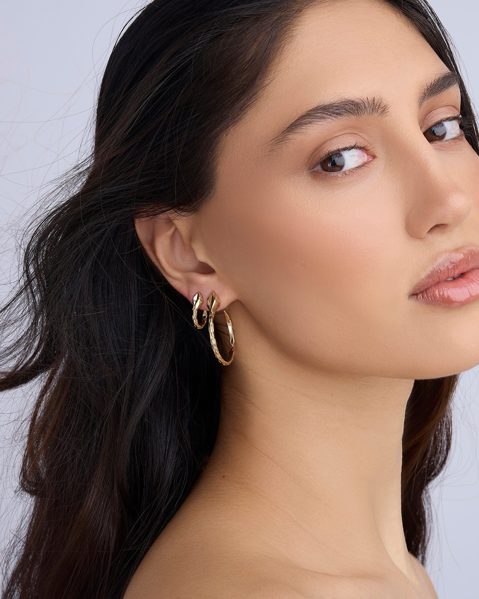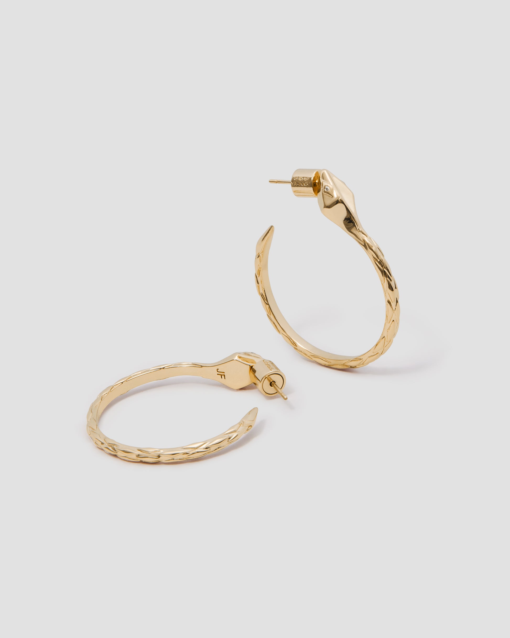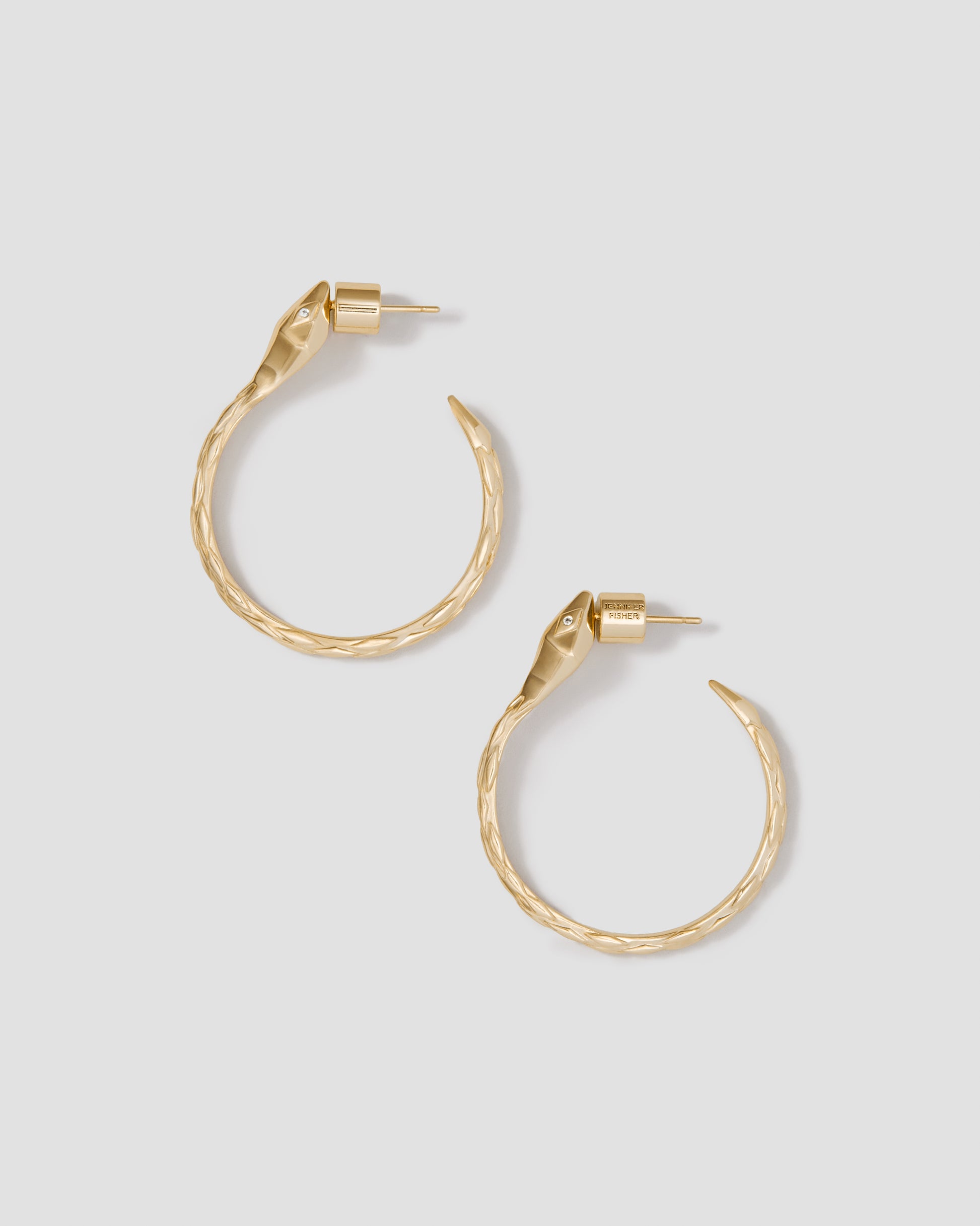 The 1" Mini Snake Hoops twist with sleek, fluid movement. Sculptural and clean with just the right edge, these pieces are archival pieces reborn. Symbolizing transformation, evolution, and the power to shed the old for something entirely new, these unexpected earrings will be your new go-tos.