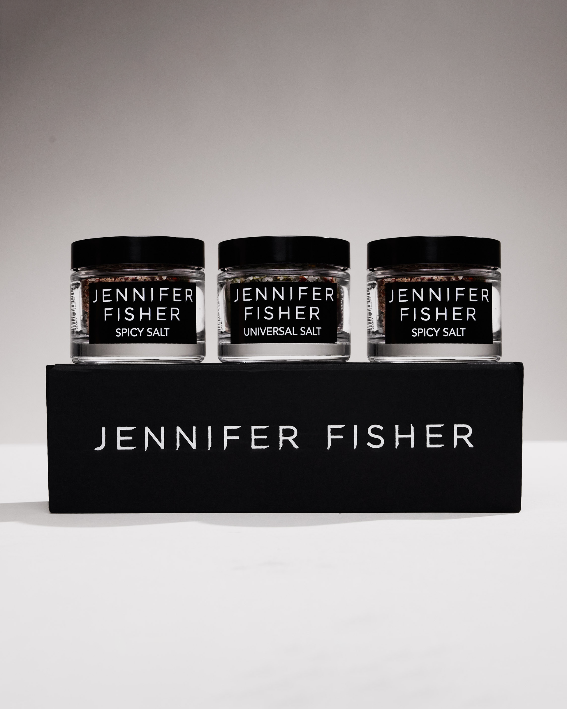 Present the perfect gift with the Jennifer Fisher Salt Trio — two Spicy Blends and one Universal Blend, elegantly boxed for the kitchen connoisseur. Crafted to elevate every dish.